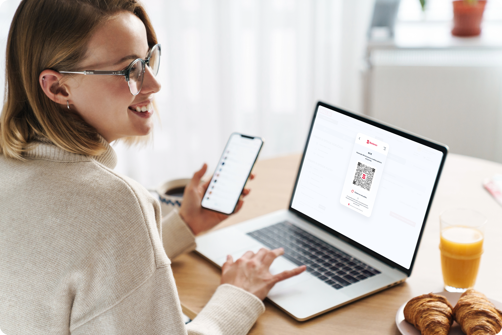 Pri výbere spôsobu platby zákazník zvolí možnosť QR platba. Platobná brána Besteron mu zobrazí QR kód s predvyplnenými platobnými údajmi.